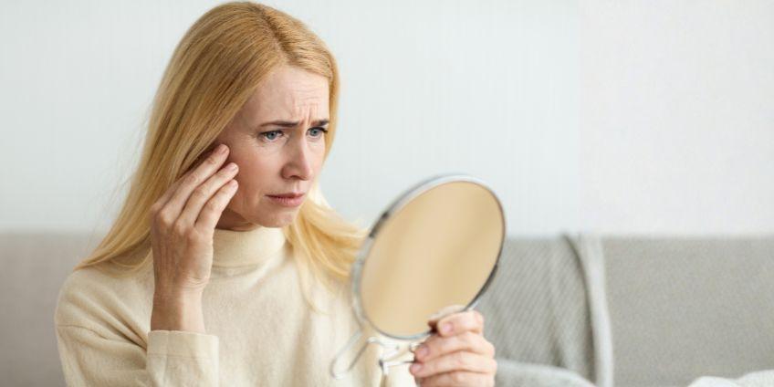 Estrogen, progesterone, and testosterone all play a role in maintaining youthful skin, strong hair, and healthy collagen levels. When these hormones decline, you may notice: